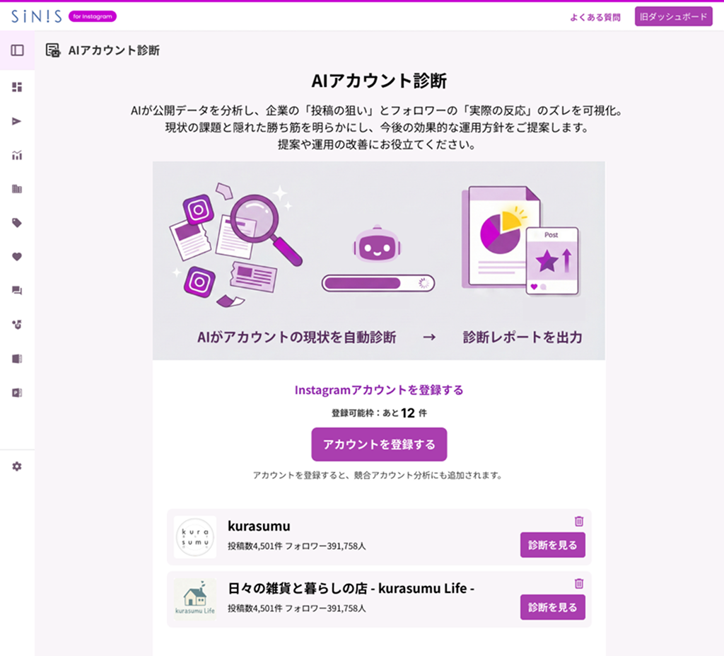 【新機能】SINIS for Instagram、「AIアカウント診断」を提供開始